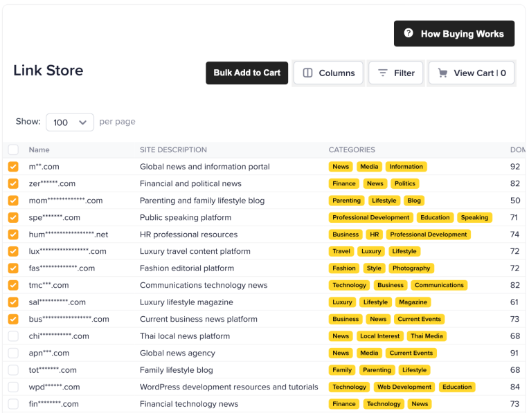 Browse, customize, and order niche-relevant backlinks with complete transparency using LinkNova’s Premium Link Store.